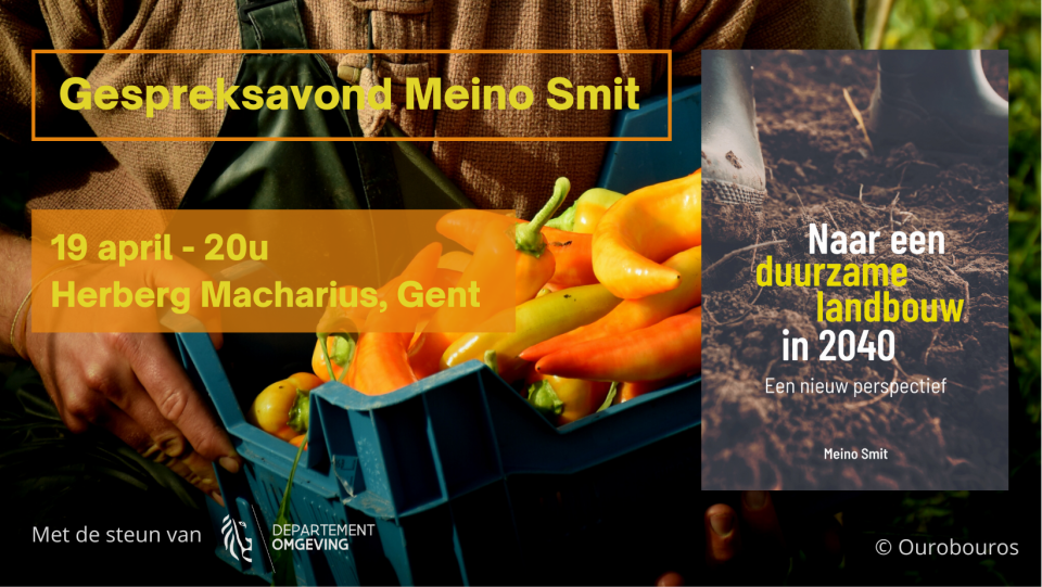 Ons landbouwsysteem staat zwaar onder druk, maar een rake, oplossingsgerichte visie is voorhanden. Op 19 april gaan Voedsel Anders, denktank Oikos en burgercollectief Buren Van De Abdij daarover in gesprek met Meino Smit, een van Nederlands meest toonaangevende stemmen over agro-ecologie. Eline D'Haene van UGent en An Verboven en/of Arne Vastershaeghe van biobedrijf De Zonnekouter toetsen hun visie aan de Belgische realiteit. Dirk Holemans van Oikos leidt het gesprek in goede banen.